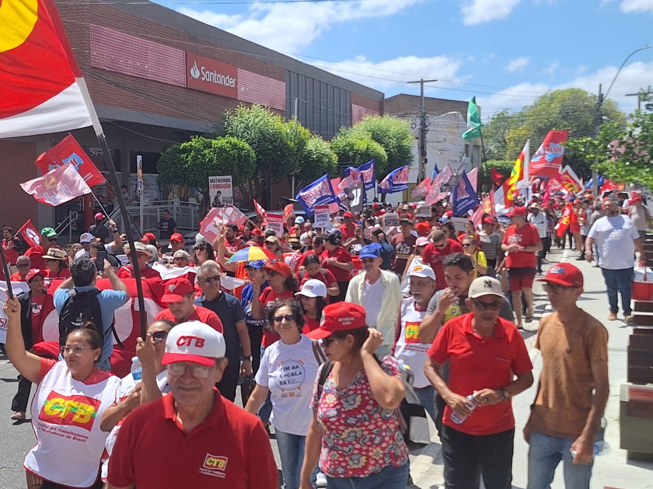 A concentração em Patos teve início na Praça Edivaldo Mota, saindo em caminhada pelas principais ruas, culminando com a realização de um ato público na Praça Cícero Supino, ao lado da feira central.