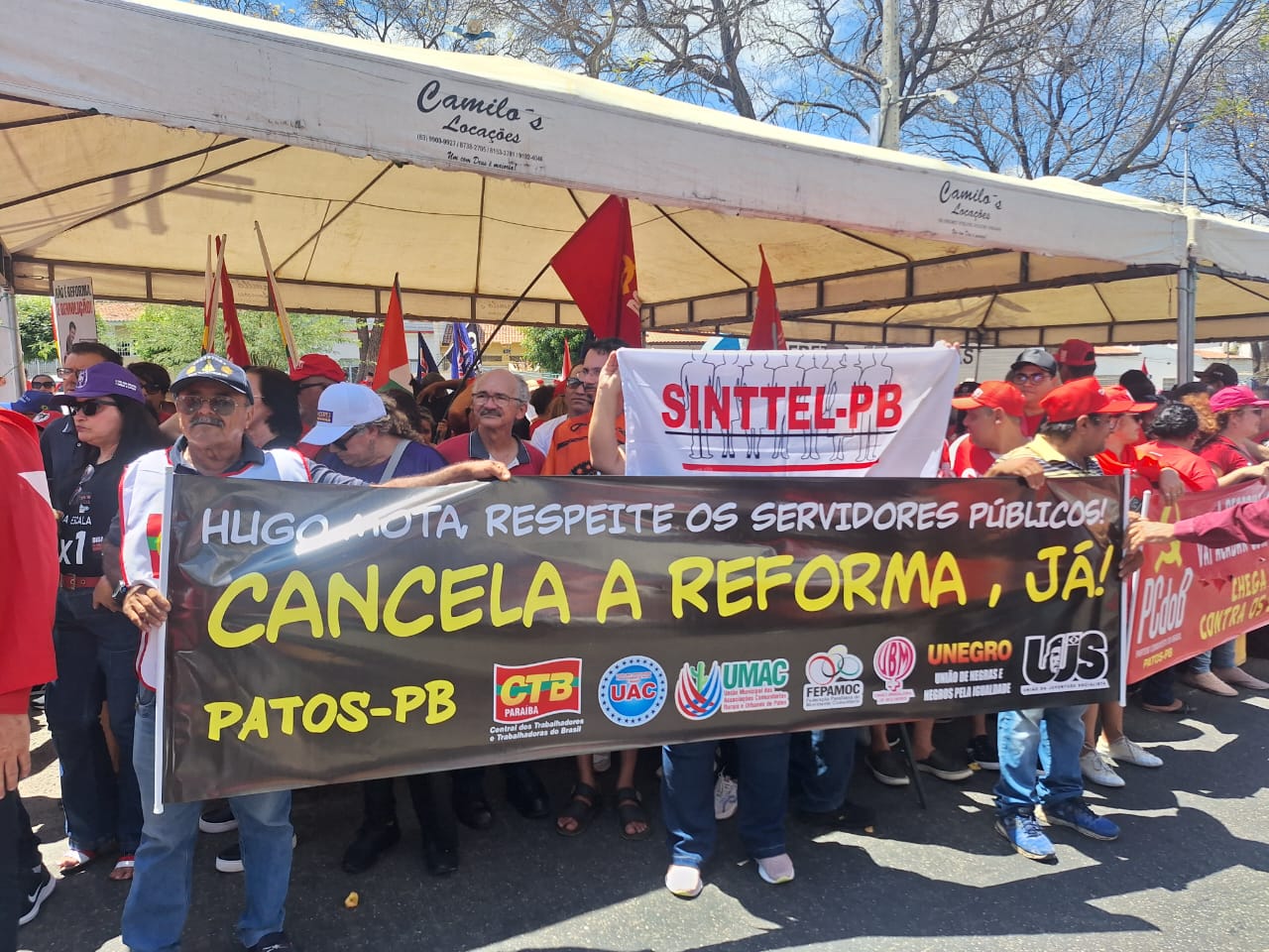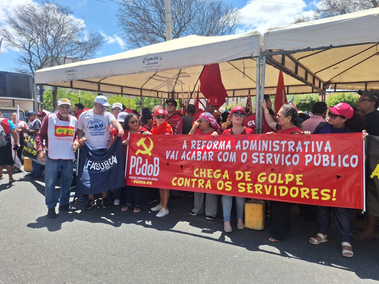 Dezenas de servidores públicos municipais, Estaduais e Federais, escolheram a cidade de Patos, Paraíba, para realizar uma manifestação e ato contra a Reforma Administrativa que prejudica diretamente os trabalhadores no serviço público, envolvendo as três esferas de governo.